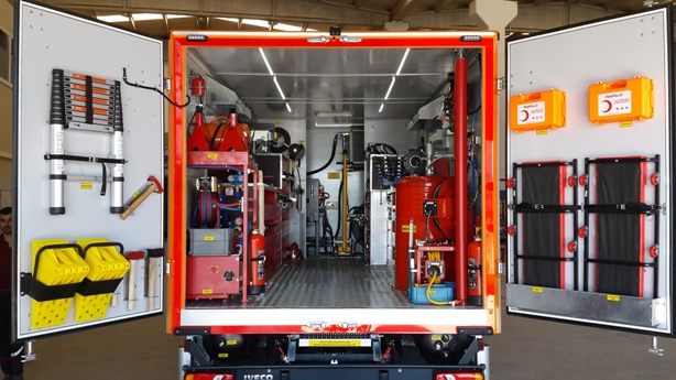 7 ton kapasite ve çift kabin özelliği ile 7 kişilik ekip ve onlarca ekipmanın yanı sıra 2 tona kadar daha ilave yük atabilme olanağına sahip araçlarda; hidrolik jeneratörden, hidrolik kompresöre, hidrolik kırıcı tabancadan hidrolik çamur pompasına, ışık kulesinden elektrofüzyon kaynak makinesine kadar çok sayıda önemli ekipman bulunuyor. Araç, büyük ekipman kapasitesinin yanı sıra küçük ebatları sayesinde özellikle dar sokaklarda müdahale imkanı sağlıyor.