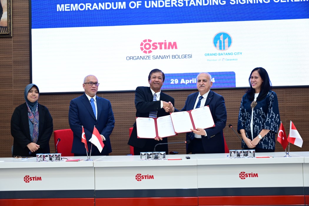 Programda Endonezya’da yatırım programına alınan iki Organize Sanayi Bölgesi Tanjungpinang Serbest Ticaret Bölgesi ve Batang Entegre Sanayi Bölgesi ile pilot OSB kurulumuna yönelik İş Birliği Mutabakat Zaptı imzalandı. Zapta, Tanjungpinang Serbest Ticaret Bölgesi adına Başkan Mohd Ikhsan Fansuri, Batang Entegre Sanayi Bölgesi adına Başkan Anak Agung Putu Ngurah Wirawan ve OSTİM Organize Sanayi Bölgesi adına da Yönetim Kurulu Başkanı Orhan Aydın imza attı.