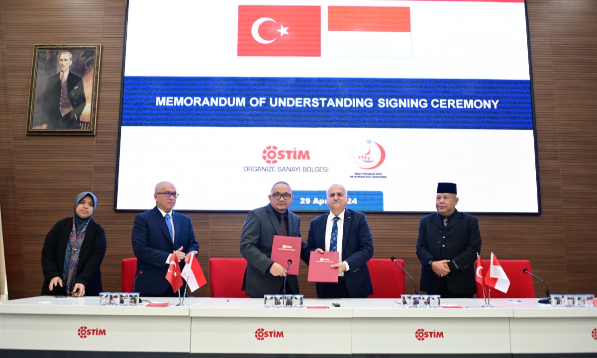 OSTİM Yenilenebilir Enerji ve Çevre Teknolojileri Kümelenmesinin (OSTİM ENERJİK) Endonezya’ya düzenlediği ticari heyet programının ardından OSTİM hakkında detaylı bilgi almak üzere temaslarını sürdüren Endonezyalı kamu ve özel sektör temsilcileri sanayi bölgesi modeli konusunda OSTİM’le iş birliğine resmiyet kazandırarak iş birliği mutabakat zaptı imzaladı.