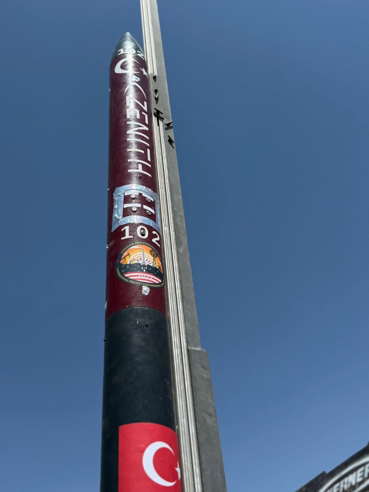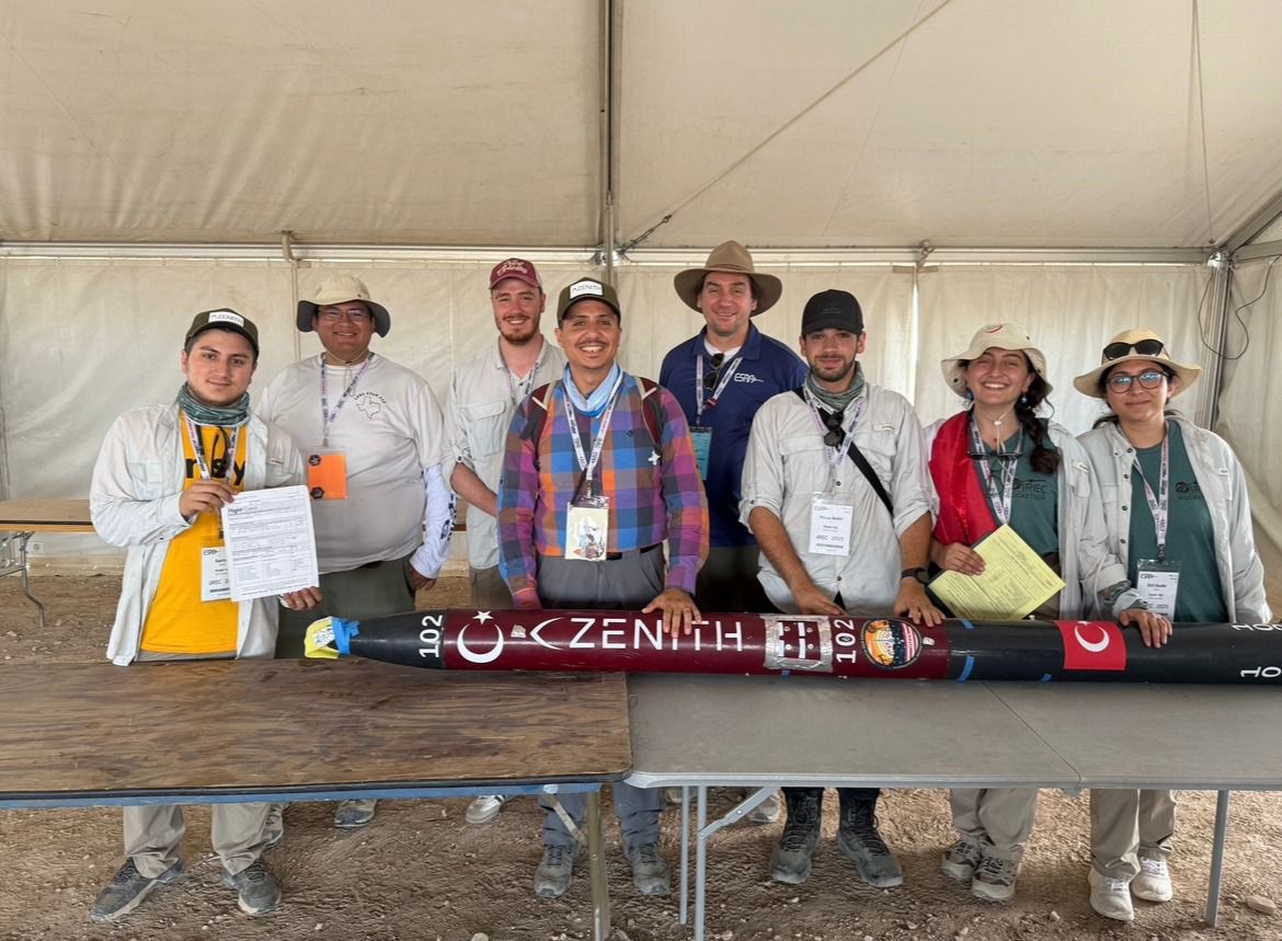 Tarihler Haziran 2025’i gösterdiğinde ise Amerika’da yerimizi almıştık. Takım olarak yarışma alanındaki tüm elemeleri başarıyla geçtik ve bunların sonucunda roketimizi rampaya yerleştirdik. Amerika’da ilk kez görebildiğimiz roket motorumuz ateşlendi, roketimiz rampadan çıkarak yükselmeye başladı… ancak motor haznesindeki gözle görünmeyen çatlak nedeniyle motorumuz havada infilak etti. Buna rağmen kanatçıklarımız, aviyonik sistemlerimiz, üst gövdemiz, burnumuz ve burun ucumuz kusursuz şekilde kurtarıldı. Ulaşmak istediğimiz irtifaya erişememiş olsak da böyle bir aksiliğe rağmen, geride kalan roket parçalarımızı başarıyla kurtarabilmek bile emeklerimizin boşa gitmediğinin bir kanıtı niteliğindeydi. Motor patlamasının ardından, motor üretiminden sorumlu olan Aerotech, üretim hatasını kabul ederek bize gelecek yıl kullanmamız için yeni bir motor tahsis etti.