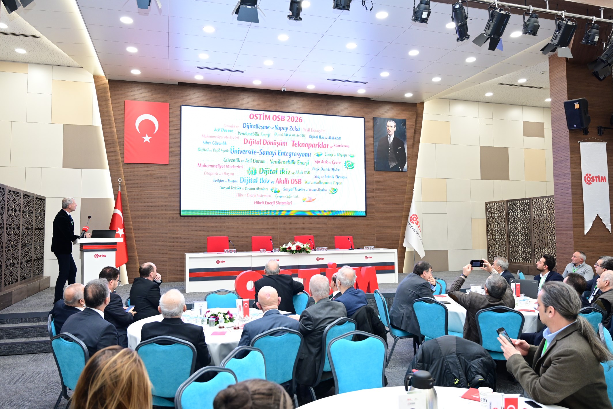 OSTİM OSB 2026 Yılı İstişare Toplantısı, OSTİM OSB Konferans Salonu’nda; iş dünyası, akademi, kamu kurumları ve sivil toplum kuruluşları temsilcilerinin katılımıyla gerçekleştirildi. Bu yılki toplantıda görüş ve öneriler OSTİM Teknik Üniversitesinin desteğiyle oluşturulan Yapay Zeka Tabanlı Bilimsel Yaklaşım metoduyla analiz edildi.